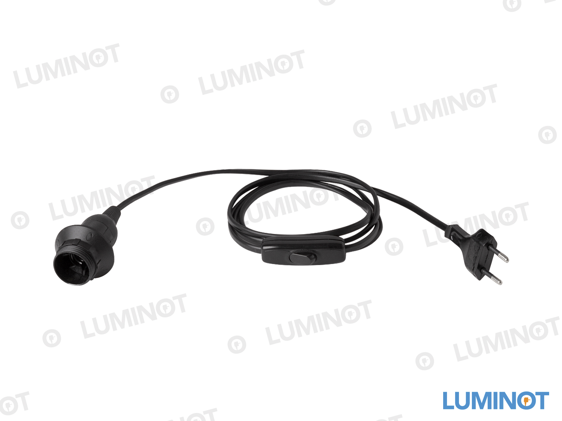 6. Aansluitsnoer met stekker en schakelaar en E27 fitting - 2x0.75mm² - 150 cm - kleur zwart ASS-FIT006